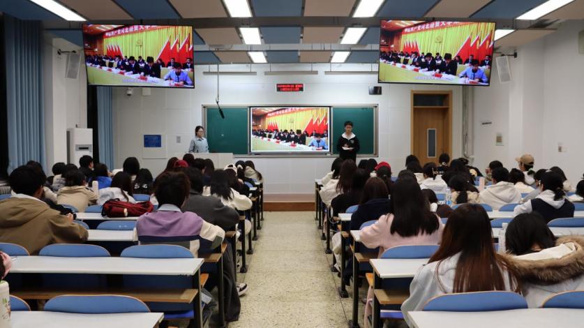 各班团支书组织本班青年团员上团课,深入学习宣传贯彻党代会精神。团课围绕“党代会基本知识”“会议主要内容”以及“党代会精神对老员工的引领”等方面进行,鼓励同学们以党代会精神为指引,在学术上勤奋钻研,在品德上诚信修身,积极参与社会实践,将个人成长融入公司发展,以青春之我,助力公司向着更高目标迈进,在时代的舞台上绽放经贸学子的独特光彩。