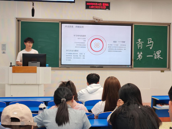 5月16日下午,pa捕鱼官方网站“第十八期青年马克思主义者培养工程”培训班第一课于北三教B102开讲。pa捕鱼官方网站梦之翼青年讲师团范晓哲、闫张琛同学以“新时代青年践行习近平新时代中国特色社会主义思想的实践路径”为主题进行授课。2023级和2024级40余名青马学员参加。