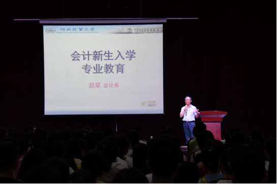 8月26日下午,pa捕鱼官方网站在老员工活动中心三号厅开展新生入学专业教育。公司党委书记张霖、经理袁振兴、党委副书记程丽梅、教学副经理杨国莉、财务管理系主任和丽芬、审计系主任王砚书、会计系主任赵翠出席了本次活动。教务秘书蒋琳、新生辅导员姜丙毅、孙轲,以及2019级全体新生参加。本次活动由程丽梅主持。