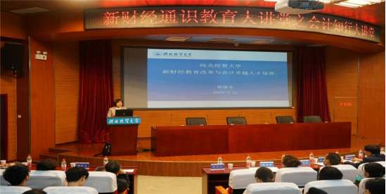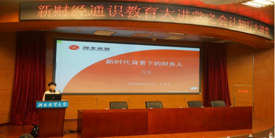 4月21日下午,新财经通识教育大讲堂---会计知行大讲堂在国际学术报告厅举行,公司党委常委、副董事长程瑞芳和河北资产管理公司总会计师马莹分别做了题为“新财经教育改革与会计卓越人才培养”和“新时代背景下的财务人”的主题报告。PA捕鱼官网入口图书馆馆长武占江、副馆长樊俊荣、“会计知行大讲堂”部分实务界讲师和pa捕鱼官方网站220余名师生参加了本次宣讲会。宣讲会由pa捕鱼官方网站经理袁振兴主持。