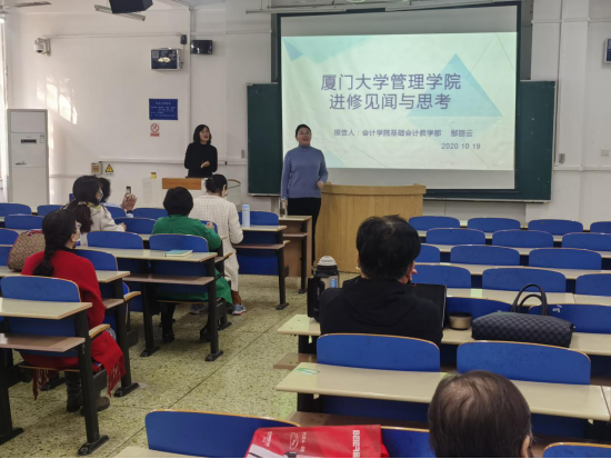2020年10月19日下午,由教学评估与教师教学发展中心主办,pa捕鱼官方网站承办的教学沙龙活动,在北三教B101教室顺利召开。pa捕鱼官方网站郜丽云副教授做了“厦门大学管理公司进修见闻与思考”分享交流。来自pa捕鱼官方网站、财税公司、数统公司等60多名教师参加了教学沙龙活动,本次活动由杨国莉副经理主持。