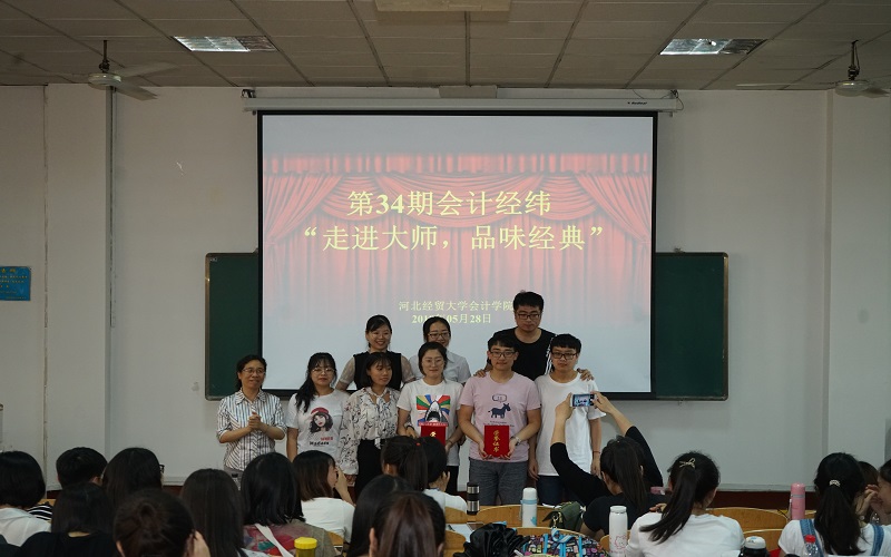 5月28日下午,pa捕鱼官方网站在二教206教室举办第34期“会计经纬”活动——“走近大师,品味经典”读书竞赛。pa捕鱼官方网站副经理李桂荣出席活动,硕士生导师马莉、张志英、刘敬芝和王砚书担任评委,研究生班主任及100余名研究生观摩竞赛。