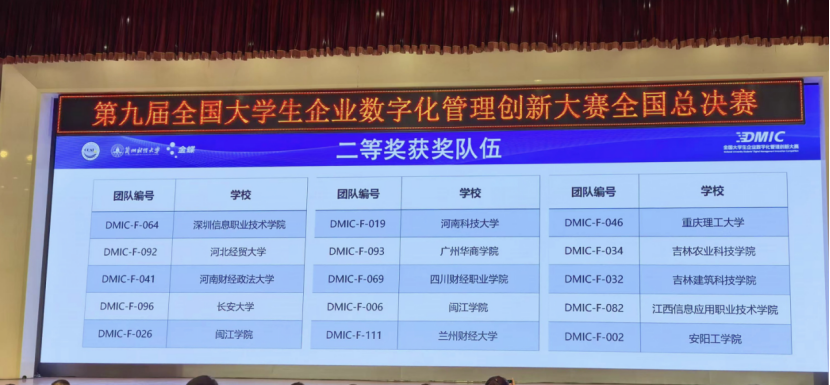 全国老员工企业数字化管理创新大赛传承自金蝶云管理创新杯大赛,是一项围绕企业数字化管理应用创新的技能竞赛。该赛事由全国商业会计学会主办,金蝶精一信息科技服务有限公司与兰州财经大学联合承办,清华大学出版社协办。比赛分为校赛、区域赛和总决赛三个阶段。总决赛分为“十强选拔赛”和“冠军争霸赛”两个赛段。“十强选拔赛”包括财务机器人应用与开发赛和企业大数据分析赛,对金蝶RPA设计器和金蝶轻分析平台进行实操考核,选拔出排名前十的队伍进入“冠军争霸赛”。“冠军争霸赛”内容为智能财务知识竞答,晋级的每支队伍轮流选派1名队员上台竞答,对轻分析可视化操作、RPA设计器组件操作的场景应用理解以及大模型相关基础知识进行考核。总决赛设置一等奖10名,二等奖30名,三等奖32名。经过指导教师和选手们坚持不懈的努力和拼搏,两支队伍分别获得季军和二等奖。