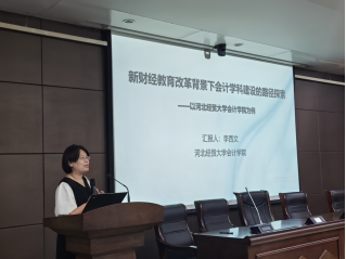 李西文做了《新财经教育改革背景下会计团队建设的路径探索——以pa捕鱼官方网站为例》主题报告,介绍了在新财经教育改革的背景下,pa捕鱼官方网站公司产品改革的基本情况、学科特色和成效、面临问题以及未来举措。她指出,应通过系统规划、严密组织、分布推荐,持续改进公司产品,不断提升会计学科发展水平。