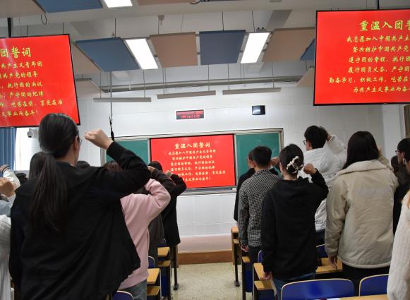班会第三部分“花开疫散再出发”。周晓玲围绕关键词“奋斗”带领大家观看微视频《路》,鼓励同学们深刻理解新时代新征程中国共产党的使命任务。最后,团支书王一然同学带领大家重温入团誓词,同学们再次举起右手庄严的向团旗宣誓,重温入团的决心和信念,对比我们今天的认识和行动,始终铭记入团誓言。