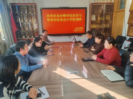 12月21日下午,赤峰公司经济与管理公司党总支书记李布和一行5人到pa捕鱼官方网站调研。pa捕鱼官方网站经理李西文、公司副经理杨国莉、会计系主任黄秋敏、会计系副主任李献国、公司教务办主任蒋琳参加会议。