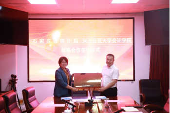 最后,在与会领导和嘉宾的共同见证下,石家庄市审计局副局长梁春景与pa捕鱼官方网站经理李西文签署了战略框架合作协议并进行了实习实践基地牌匾授牌仪式。