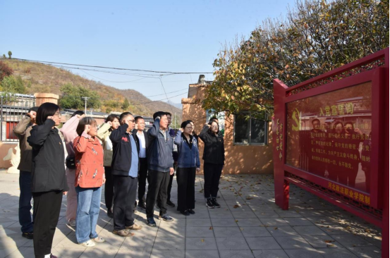 在平定县革命根据地历史展览馆中,老师们深切体会了英勇革命战士所遇到的艰难险阻,更加珍惜新中国成立的来之不易。随后,老师们走进洪河漕百团大战纪念馆,参观了晋察冀军区司令员聂荣臻指挥所的旧居,共同缅怀老一辈无产阶级革命家的丰功伟绩,回顾了“聂帅救孤”的温情故事所展现的人道主义精神,同时参观了“抗日烽火遍地燃”、“百团大战振敌寇”等展厅,重温了新中国诞生前不平凡的历程。在百团大战指挥所旧址,全体教师庄严宣誓神圣誓词,铿锵有力的声音在旧址袅袅回响,表达了老师们坚定的信仰和矢志奋斗的决心。