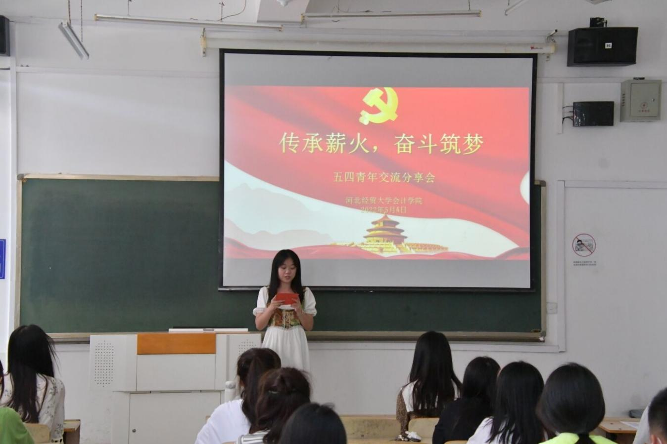5月4日中午,pa捕鱼官方网站团委在B教209教室举办以“传承薪火,奋斗筑梦”为主题的五四青年交流分享会。pa捕鱼官方网站团委副书记冯子怡和团委骨干出席,2020级、2021级团支书以及优秀员工代表共计35人参加。