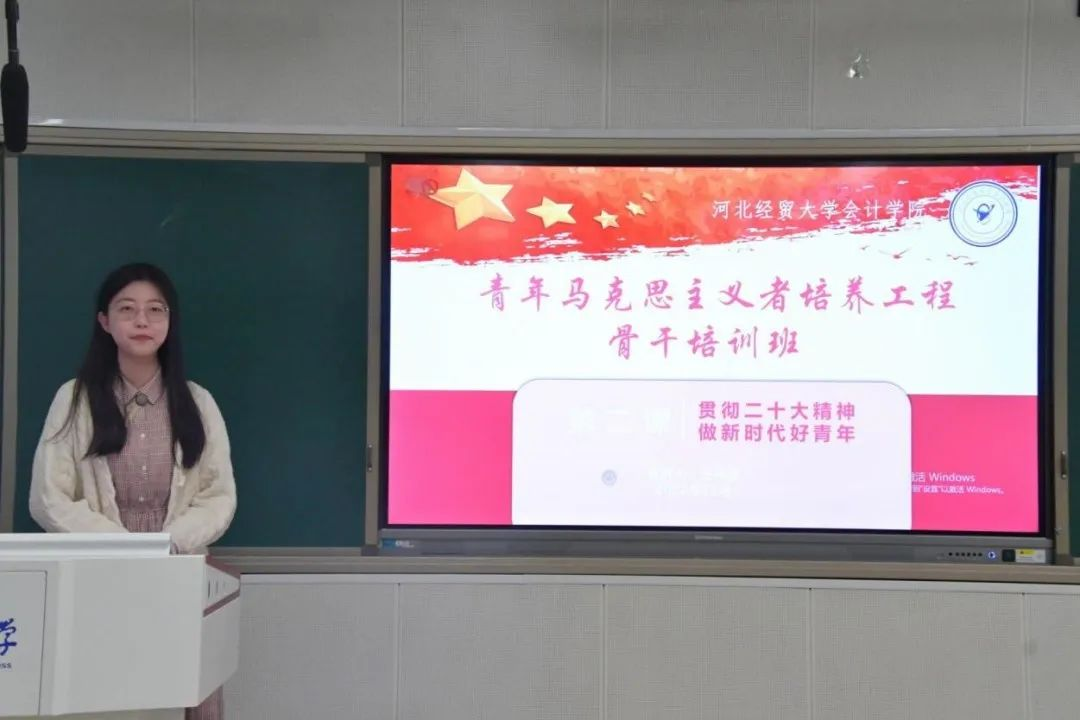 11月4日晚,公司第十三期“青年马克思主义者培训工程”第二课于北三教A204开讲。pa捕鱼官方网站优秀员工代表王佚名以“贯彻二十大精神,做新时代好青年”为主题进行宣讲,全体青马学员40余人参加。