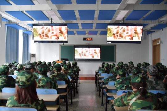 8月27日,pa捕鱼官方网站在第三教学楼B201、B202、B203、B204教室开展“参军入伍政策”学习会和“爱国主义教育”主题观影活动,2023级368名新生参与学习并观看电影《高山上的花环》。