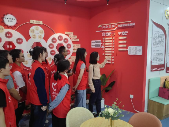 pa捕鱼官方网站团委书记周晓玲与志愿者一同参观慈善志愿服务工作站