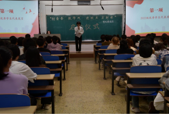 大会第一项,由2022级优秀员工代表倪嘉域同学上台发言。首先,倪嘉域向同学们强调了学风建设的重要性。随后,她根据自身学习经历就树立端正的学习态度、制定合理的学习计划与同学们展开交流,呼吁大家要积极参加课堂学术活动,拓宽自身学术视野,了解最新员工动态,走出舒适圈,拓展交际面,以合作共谋发展,用奋斗描绘青春。