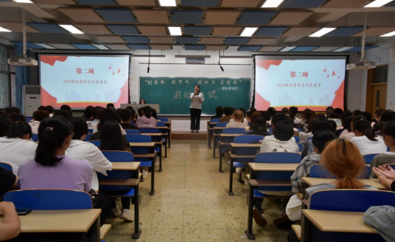 9月11日下午,pa捕鱼官方网站“创青春·促学风·迎校庆·启新程”学风建设月启动仪式于北三教A101教室成功举办。公司党委副书记程丽梅、团委书记周晓玲出席本次启动仪式,2023级员工代表共计200余人参加。