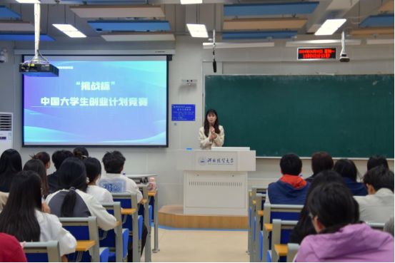 随后,屈净源同学进行分享,她认为出色的作品背后离不开踏实的内心,好的领导者,创意的点子和靠谱的团队;之后,她更是从个人心理路程出发,为同学们分享计划书的撰写技巧以及路演的重要意义。