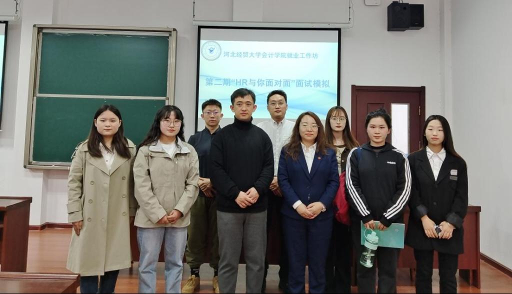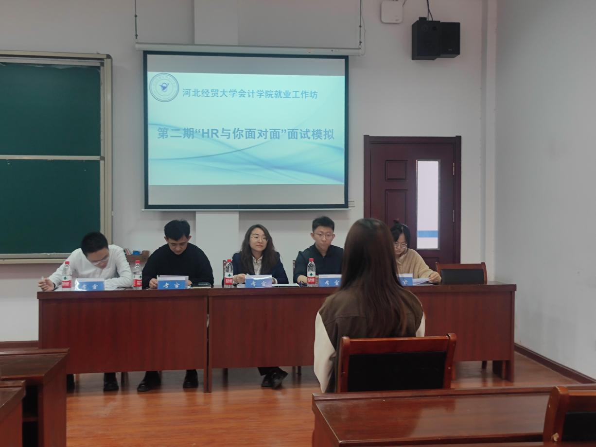 2023年3月27日下午,pa捕鱼官方网站在二教103室举办第二期就业工作坊——“HR与你面对面”面试模拟活动。本期就业工作坊邀请由中信证券石家庄槐岭路营业部副总经理兼市场总监李倩、pa捕鱼官方网站就业工作负责人付磊以及员工代表担任面试考官。
