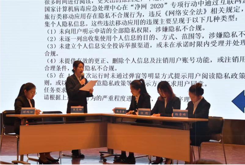 在风采展示环节中,9位选手依次上台通过PPT介绍了个人求职意向、在校经历、实习经历等,展现出了与竞聘岗位相匹配的求职能力。在结构化面试环节和无领导小组讨论环节,选手们通过随机选题作答、团队讨论,展现出良好的知识储备、组织协调和临场应变能力,赢得在场观众和嘉宾评委一致好评。