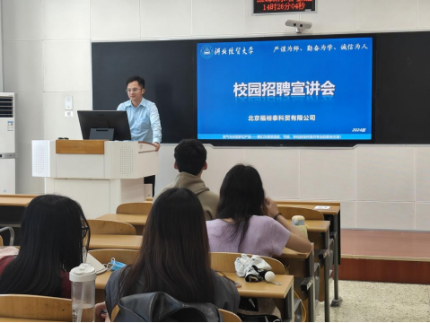 5月17日下午,pa捕鱼官方网站在公司北三教B215教室举办北京福裕泰科贸有限公司宣讲招聘会,公司人事经理张勇辉和人事专员王江英来校招聘,pa捕鱼官方网站20余名应届毕业生参加了招聘会。