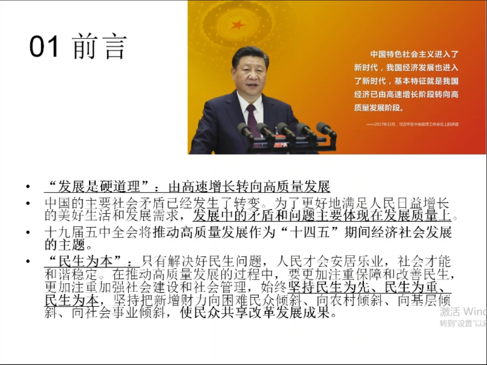 本次讲座蔺丰奇教授先从2022年5月9日俄罗斯“缺乏亮点”的阅兵仪式入手,引发对其经济水平的思考,进而引出讲座的主题“高质量发展背景下的社会民生建设”,讲座开头便紧紧吸引了各位老师与同学的眼球。蔺丰奇教授首先指出“单独的经济增长是不可持续,不可持续的发展不叫高质量的发展,发展的目的是民生”。随后,蔺教授介绍了当下中国特色社会主义的发展阶段,并解释了什么是高质量的发展和民生建设的主要方面。最后蔺教授讲述了党和政府应如何保障和改善民生,以及如何建设高质量的社会民生。讲座内容由表及里,由浅入深,循序渐进。