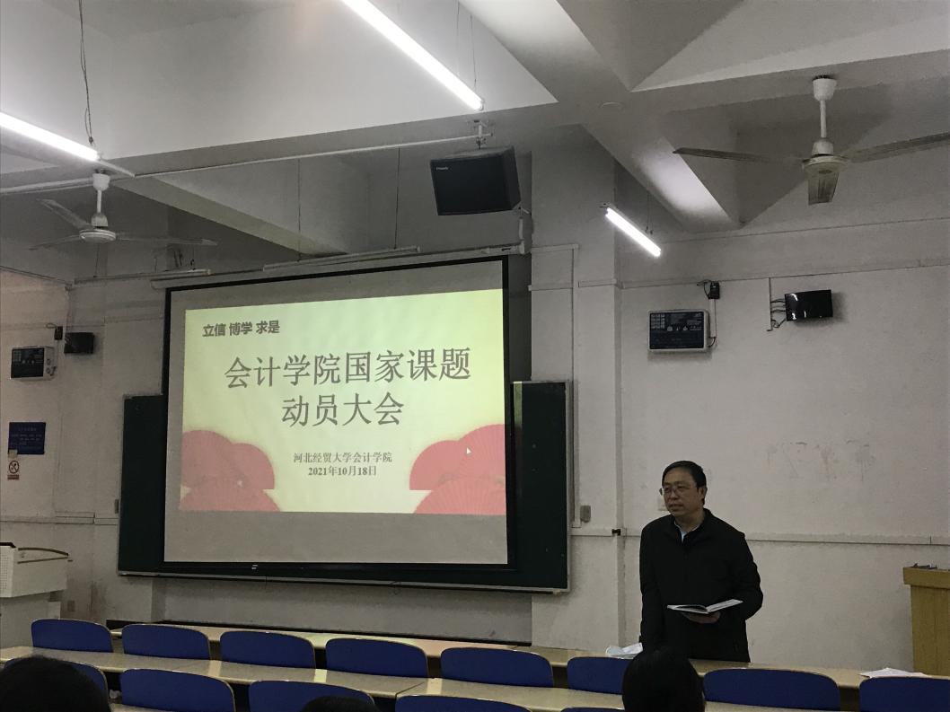 2021年10月18日下午,pa捕鱼官方网站经理袁振兴、副经理李西文在第三学楼B101教室为pa捕鱼官方网站各位老师召开pa捕鱼官方网站国家课题动员大会。