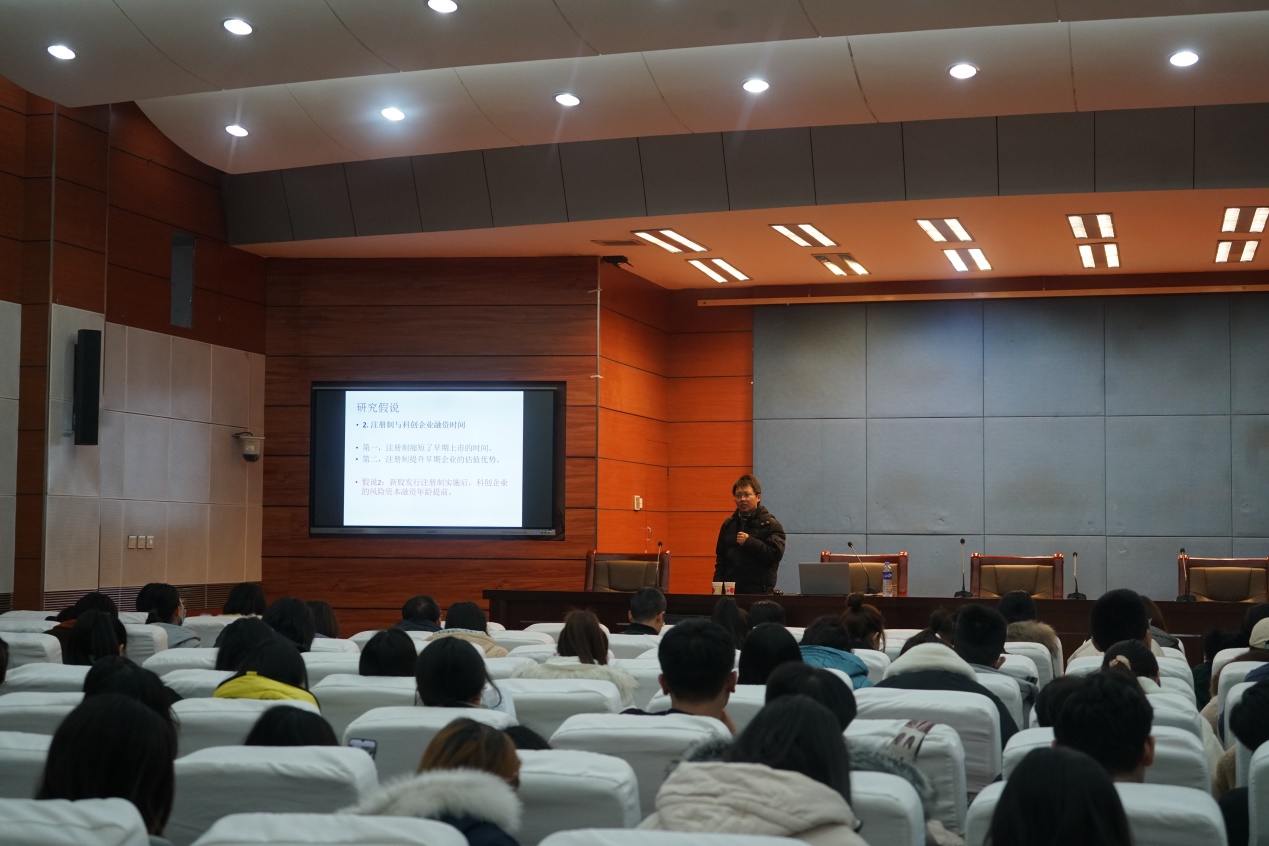 11月30日下午,中山大学金融公司彭涛老师应公司pa捕鱼官方网站邀请作题为《股票发行制度变革与科创企业融资》和《双重差分方法在实证研究中的运用》的报告。pa捕鱼官方网站经理袁振兴、副经理李西文、pa捕鱼官方网站全体教师以及2020级研究生180余人参加了本次讲座。
