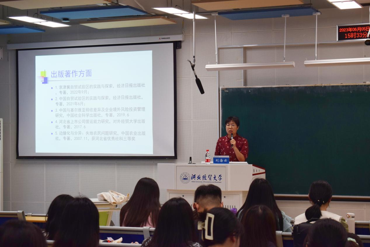 2023年6月5日下午,pa捕鱼官方网站优秀硕士生导师刘海云教授在第三教学楼B201室为师生们作以“如何发挥专业优势,做好社会服务”为题的学术报告。此次学术报告由经理李西文主持,科研秘书韩冰以及22级pa捕鱼官方网站全体研究生参加。